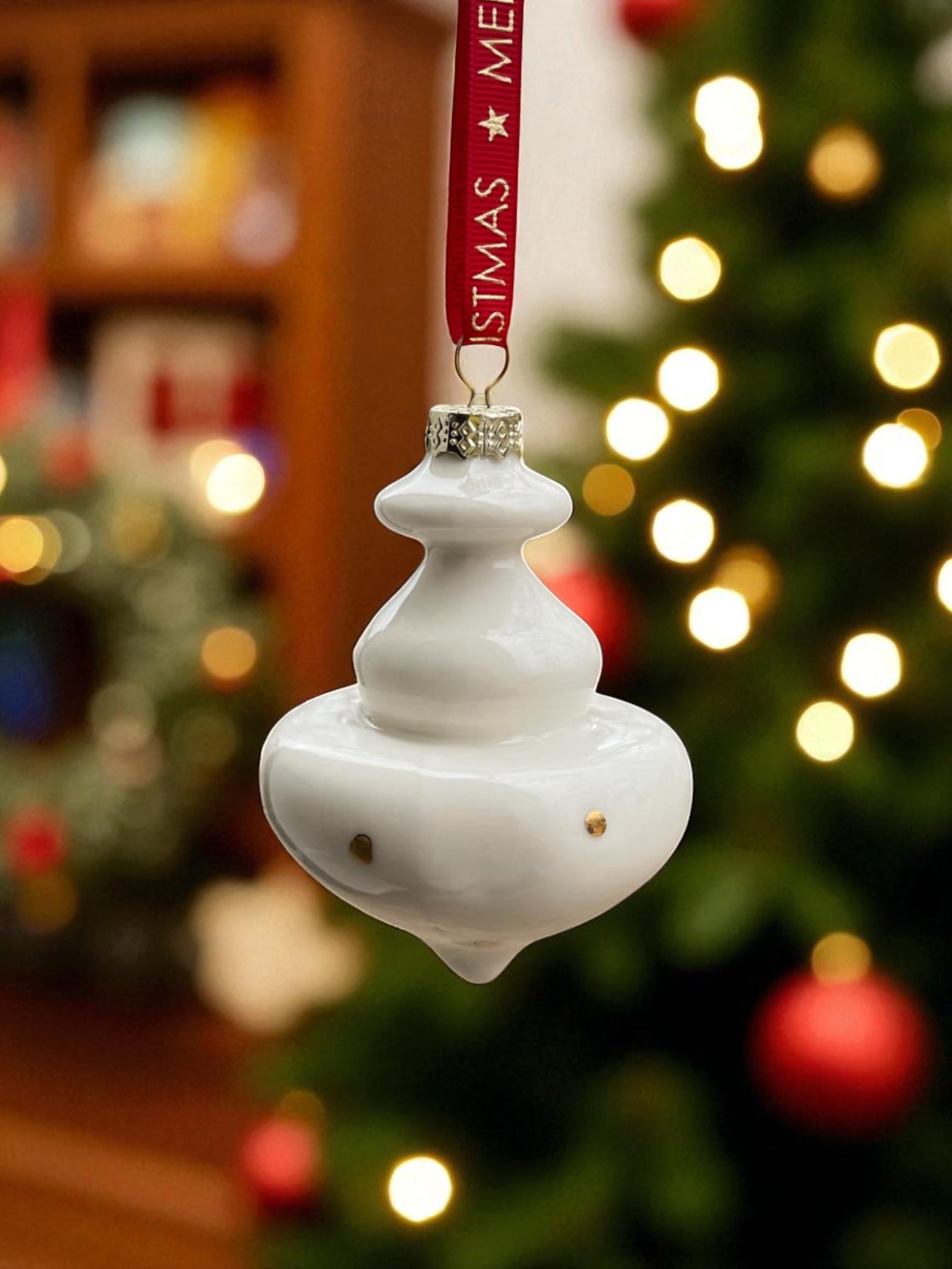 The Year Ornament 2024 is a charming and exclusive Christmas bauble adorned with beautiful gold details. Created in our cozy workshop, it features a porous porcelain sphere covered with an elegant white glaze and hand-painted with 18-carat gold. This is the second piece in our annual ornament series and is limited to just 20 pieces. Measuring approximately 12 cm in height, it brings a touch of magical Christmas spirit to any home.