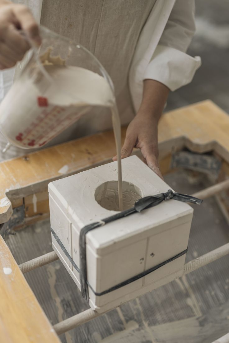 – fx støbegips til keramikforme (som den type fra Silica Nordic) 1,4 kg gips til 1 liter vand