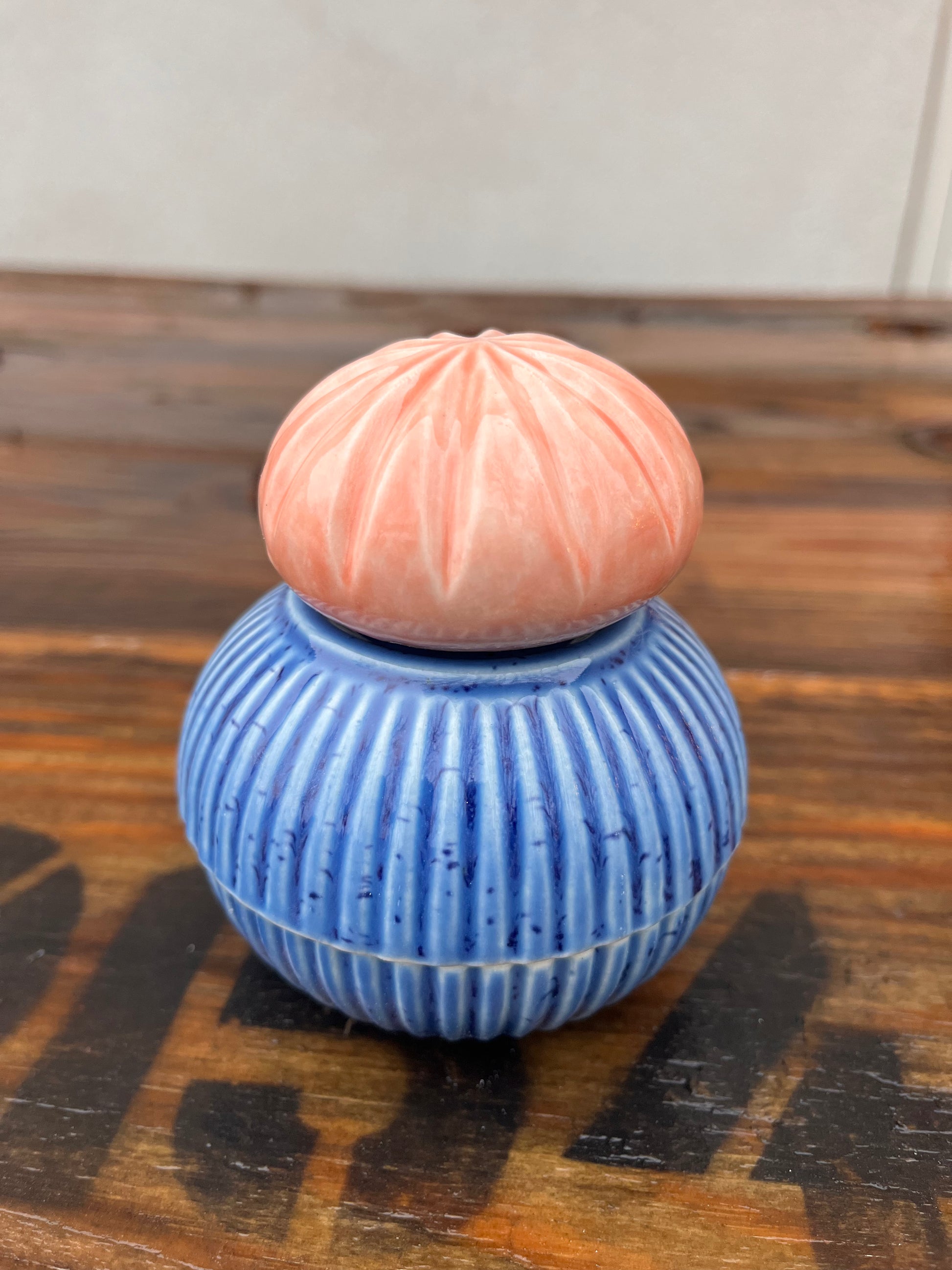Hver eneste én er håndlavet i keramik, formet i hånden og glaseret i de fineste pasteller med et blødt, rillet udtryk. Toppen har en lille knop, der giver dem det dér legende, hyggelige og helt særlige udtryk, som jeg elsker.