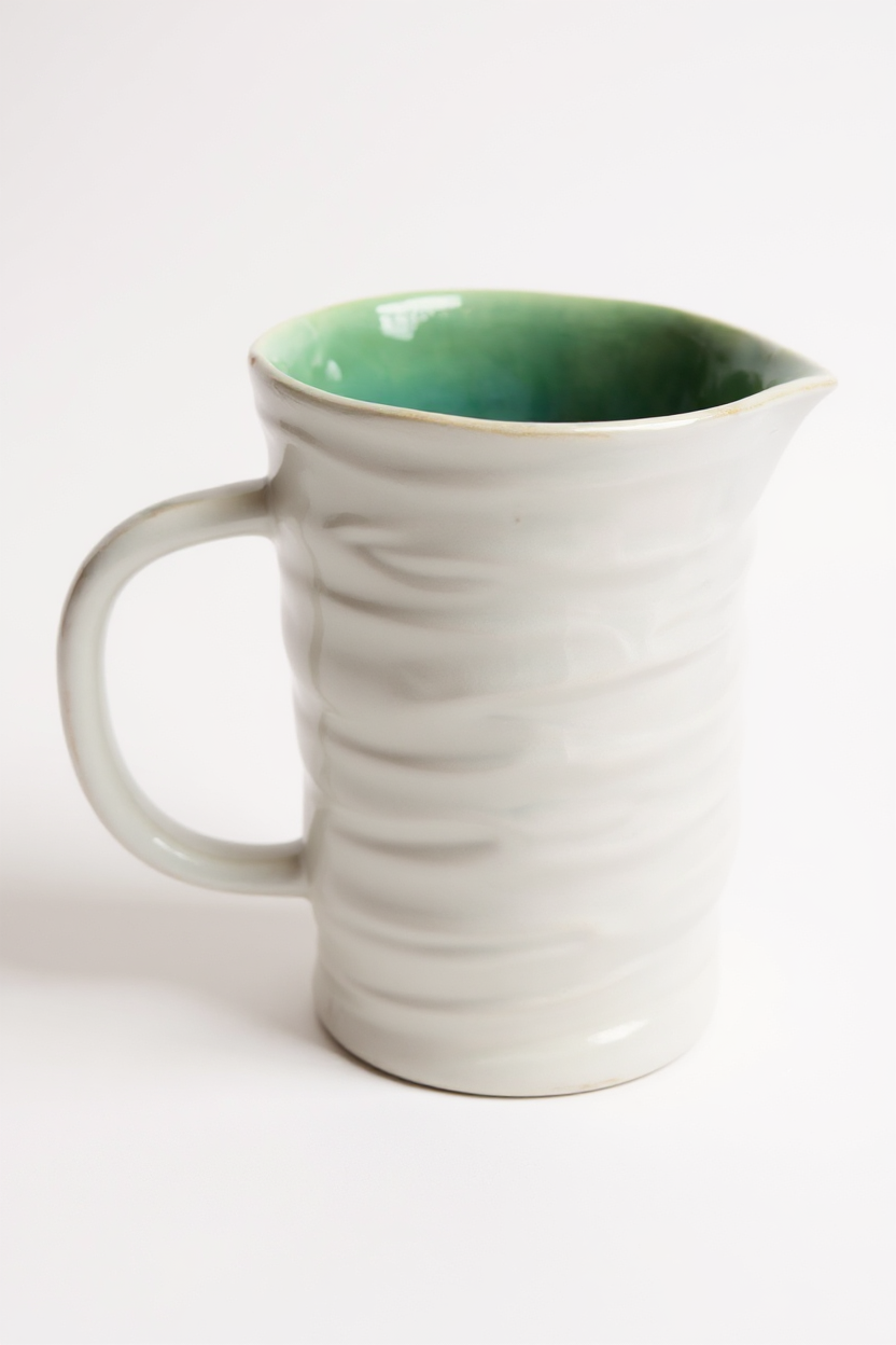 Den kan rumme 350 ml (altså, ca. til mælk til kaffen eller lidt blomstervand), og så er den 13 cm høj – lille, fin og lige til at have stående fremme altid. Fordi hvorfor gemme noget så pænt væk?